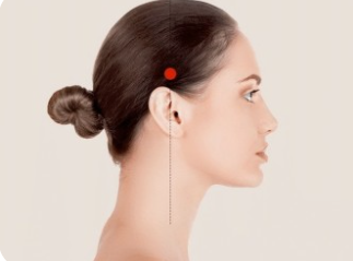 1. 편두통이 있는 쪽의 귀에서 손가락 하나 너비만큼 위로 올라간 지점(솔곡)을 엄지손가락으로 꾹 누릅니다.